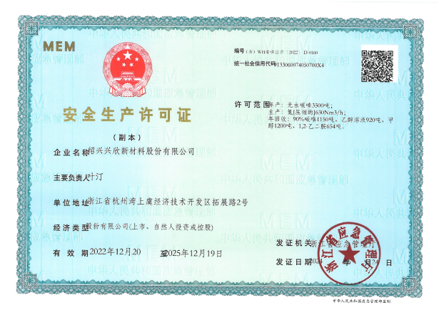 紹興興欣新材料股份有限公司成立于2002年06月27日,占地面積122畝,位于杭州灣上虞經濟技術開發區拓展路2號,現有職工200余人,專業技術人員50余人;博士、碩士研究生30余人組成的一支知識型、專業化的技術科研團隊。公司面向全球市場,專業開發電子化學品、環保化學品、醫藥中間體、高分子材料等先進新材料重點領域的省級科技型企業;建有浙江上虞、安徽東至兩個生產基地。目前為“國家高新技術企業”、浙江省“隱形冠軍”企業、浙江省專精特新中小企業;建有“省級”研究開發中心,共建天津大學浙江紹興研究院電子化學品研發中心。